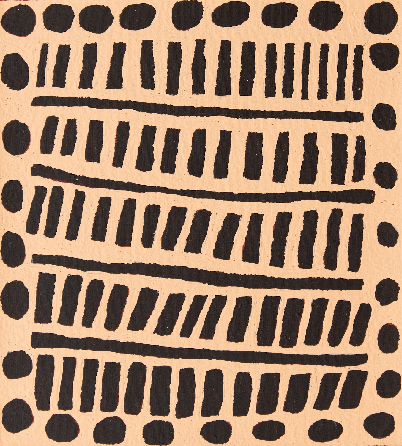 Rubilee is the daughter of papunya Tula artist Wintjiya Napaltjarri. She wors born in Haasts Bluff c 1960, then moved with her family to Papunyaand then after marrying moved to Kintore. She began painting in early 2007. Her sisters Clara and Eileen Napurrula also paint for the Company.